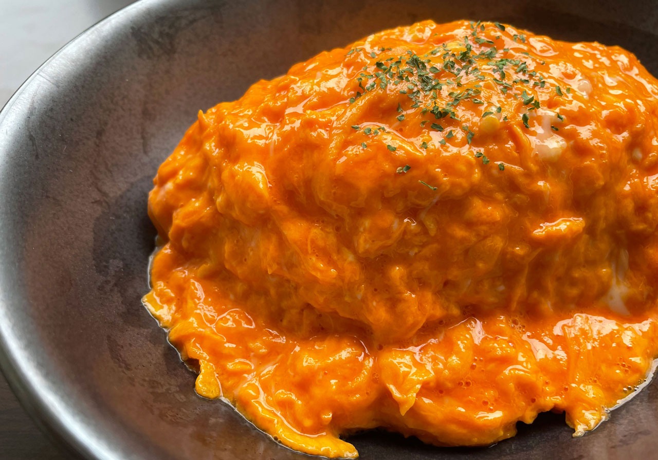 そのオレンジ色の卵黄を使用した料理は、他では見られない鮮やかなオレンジを彩ります。